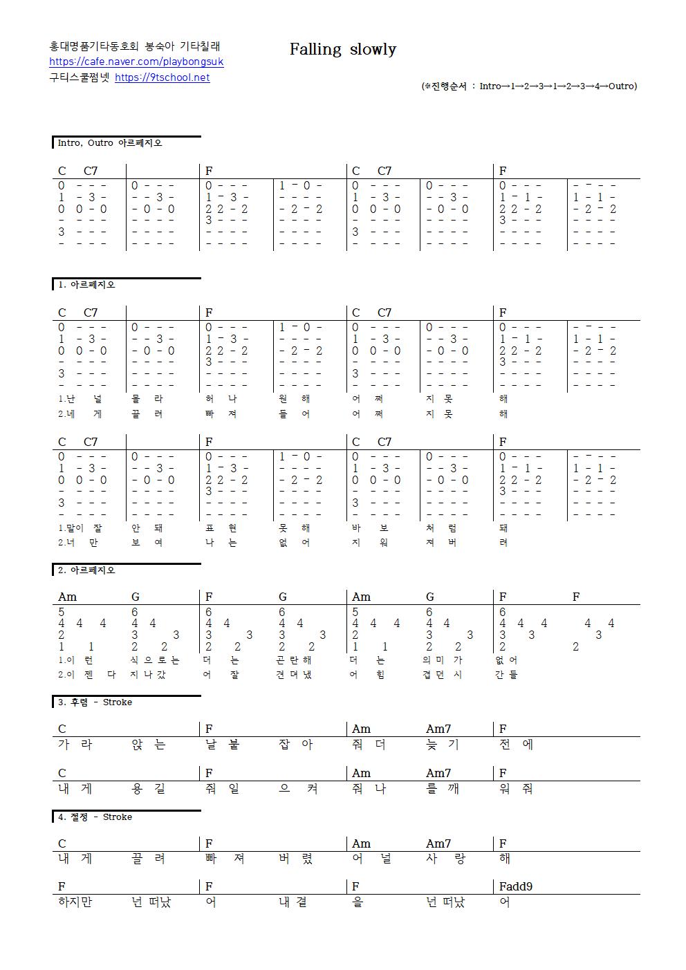 Falling slowly 한글 버전 기타 악보(기타 코드)Love My life/즐기는 인생♬ 2020. 2. 8. 23:15728x90