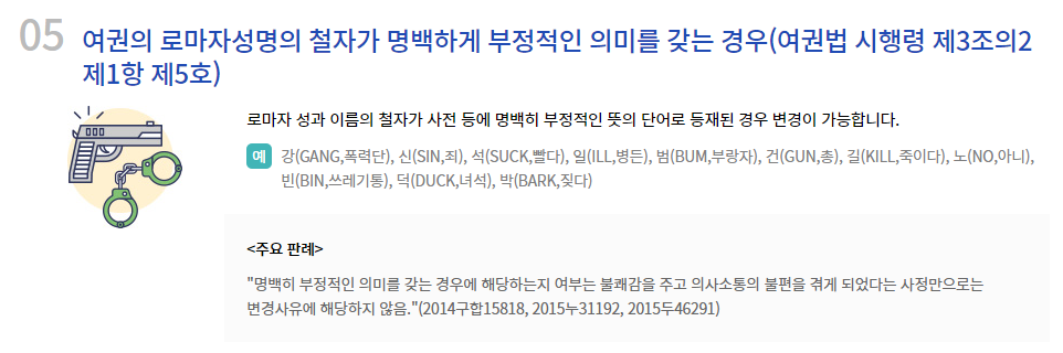 이처럼 영문 이름이 부정적인 의미를 갖게 되면 개명을 허용합니다.
