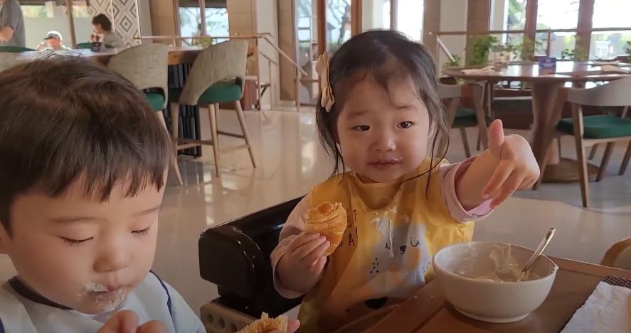 (여행중에 빵 맛을 알아버린 시온이와 하온이)