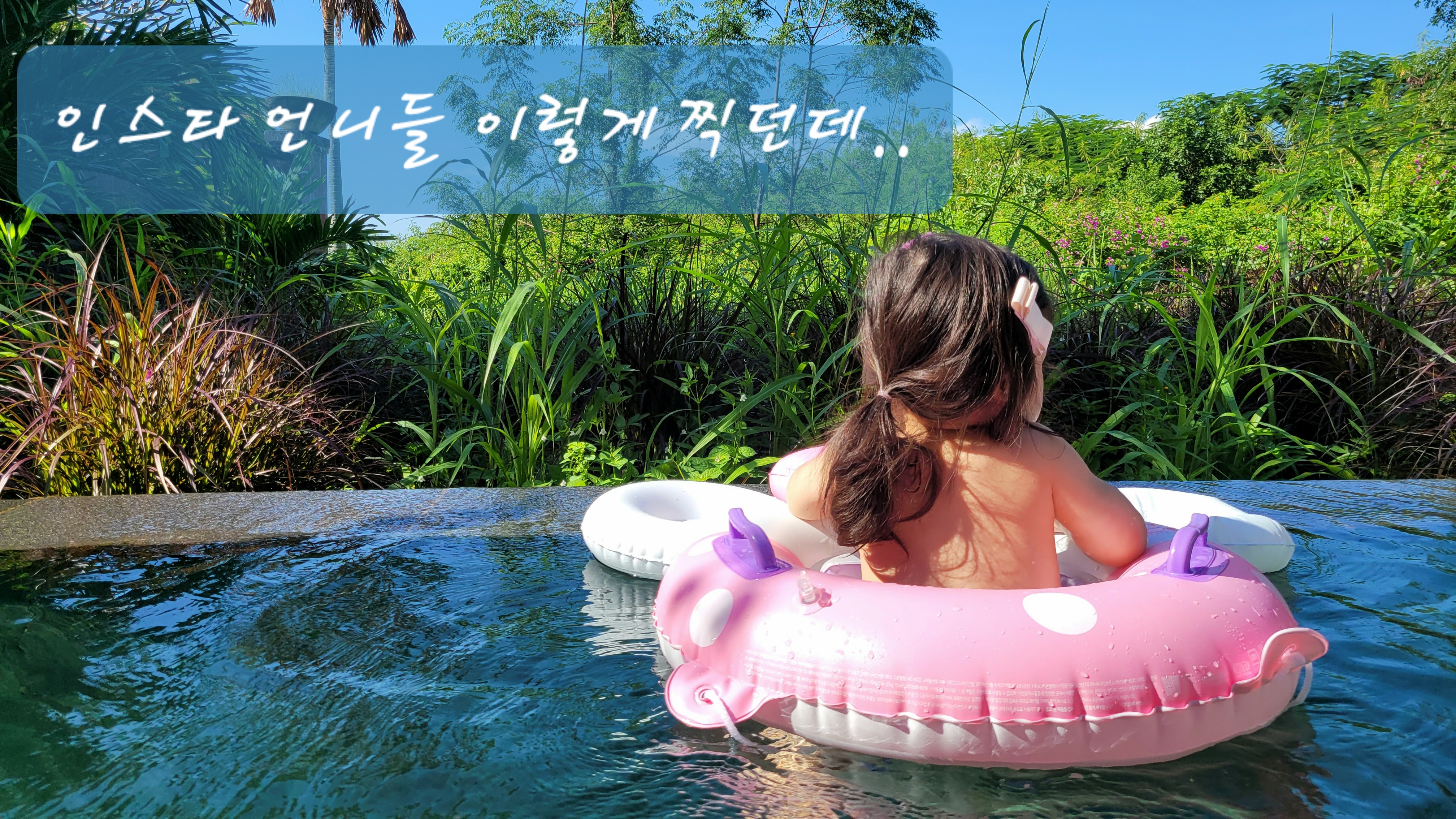 사진도 몇 짱 직고 하면서 빌라 속 수영장에서 재밌게 놀아봅니다.