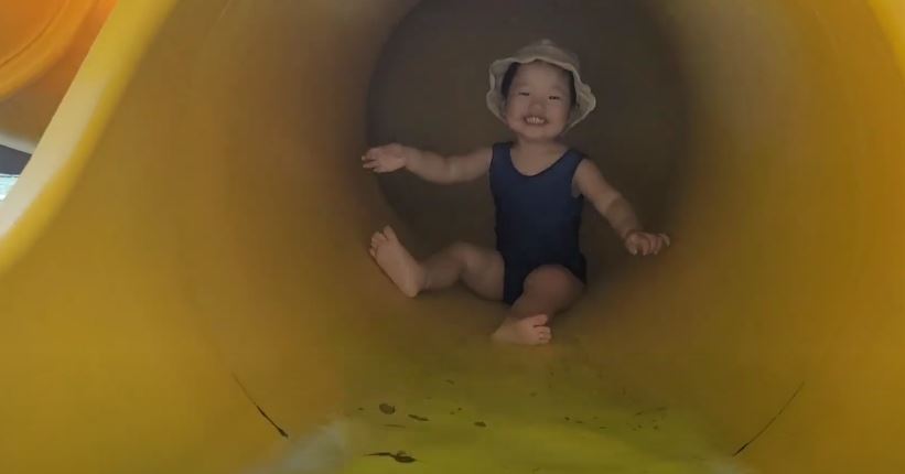 이 슬라이드마저 혹시 아이들이 무서워한다면, 아까 소개한 계단 밑 조그마한 풀장의 미니 슬라이드를 데려가보셔요.