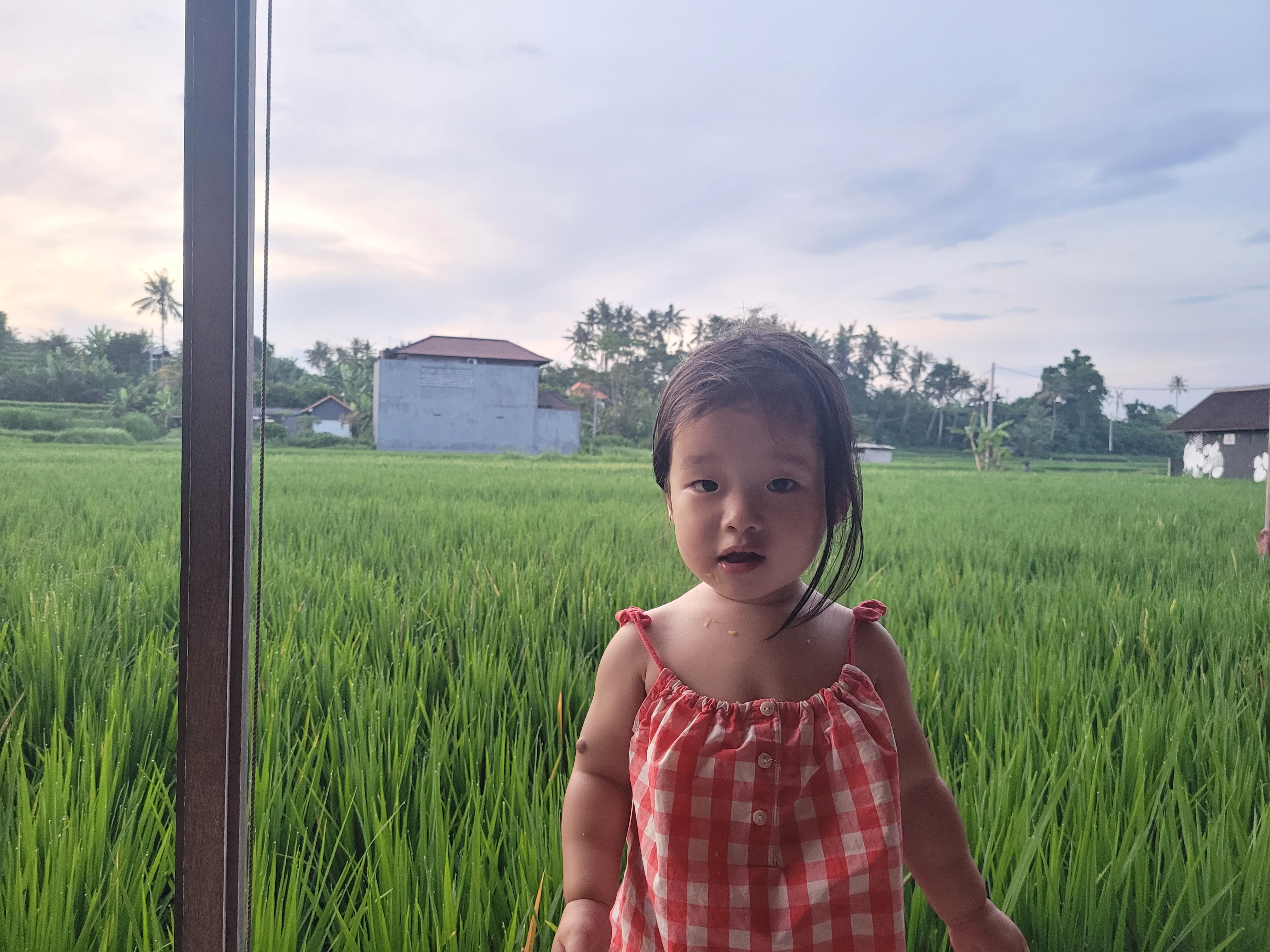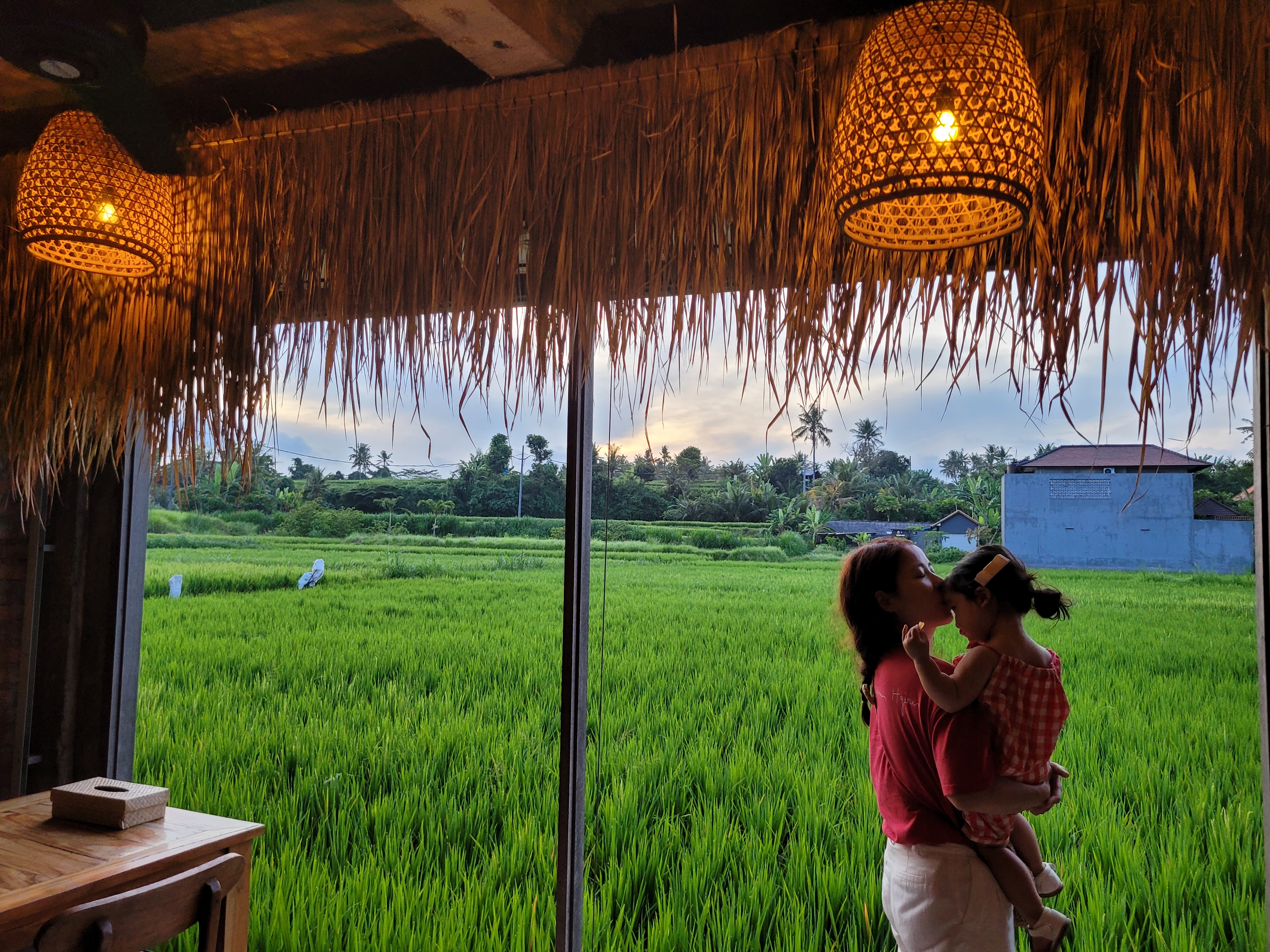 Rice Filed View라고 하지요? 벼농사 밭 풍경을 볼 수 있는 자리에 앉으니 분위기가 삽니다. (모기를 조금 물리긴 하지만..)
