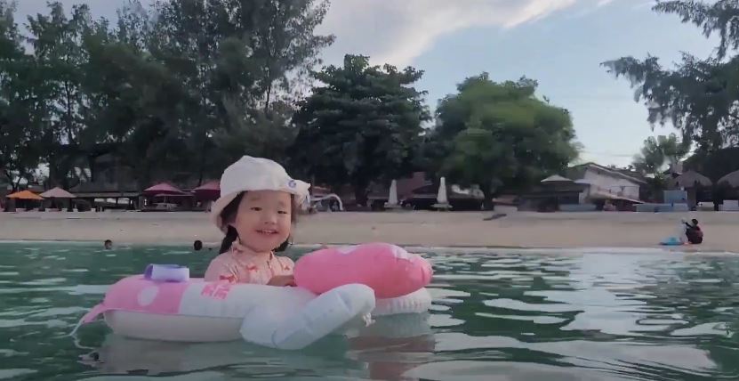 물놀이를 좋아하는 우리 딸은 튜브에도 잘 타서 튜브를 태워서 첫 바다수영을 시켜봤습니다.