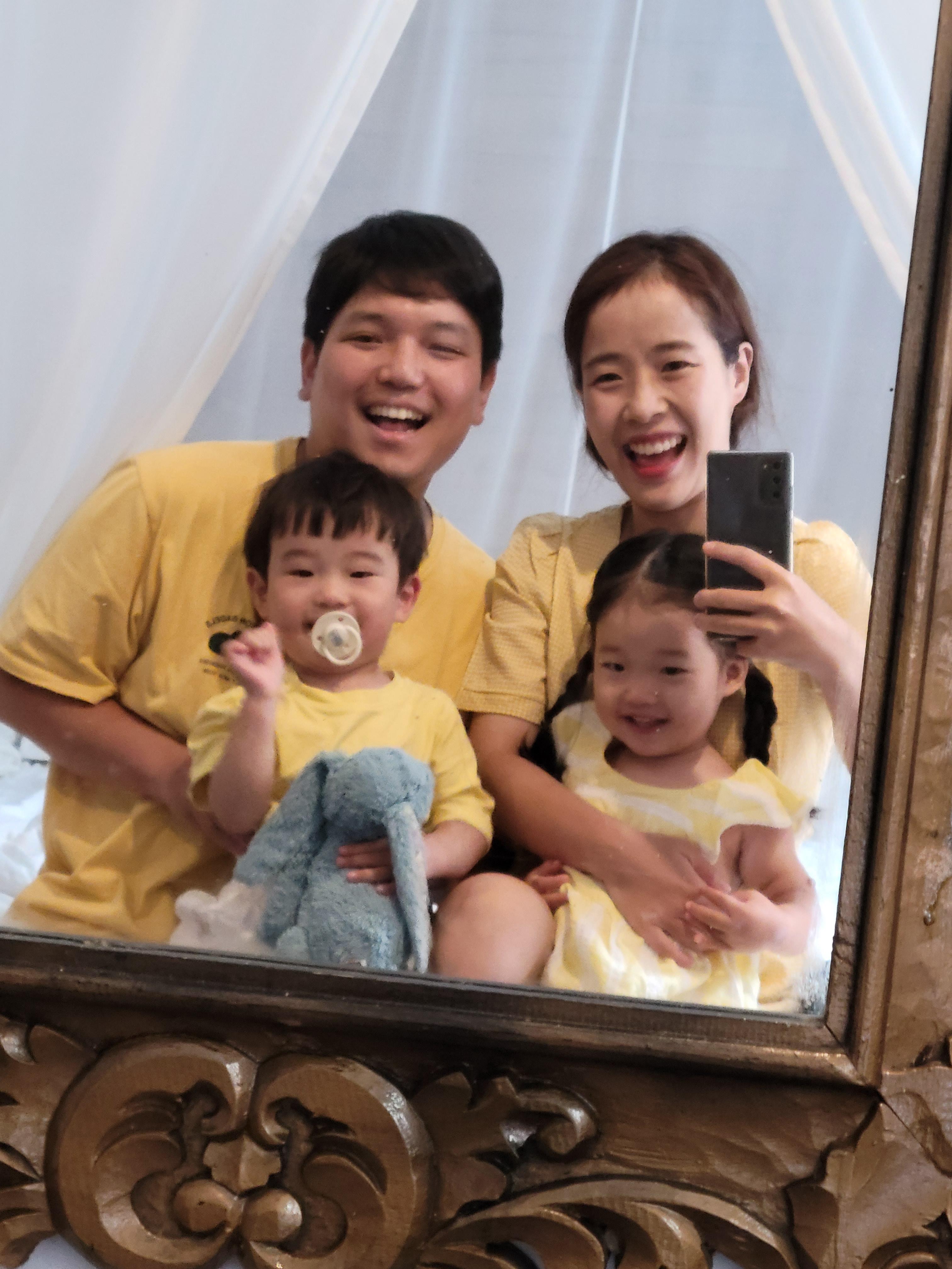 오후에는 엄마, 아빠, 쌍둥이 모두 옷을 예쁘게 갈아입었습니다.