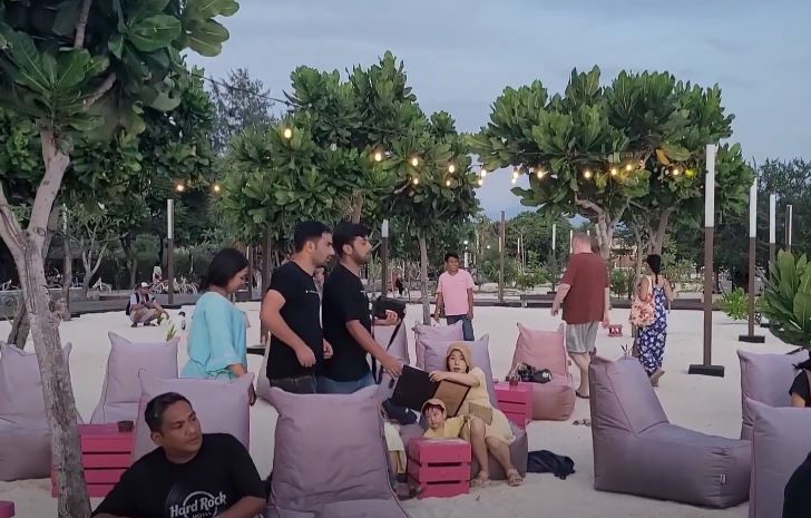좌석들이 해변에 쫙 펼쳐져있고, 노을을 바라보며 앉을 수 있습니다.