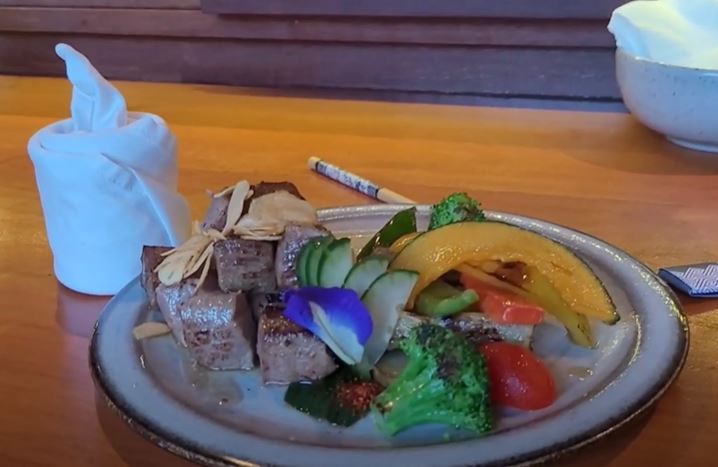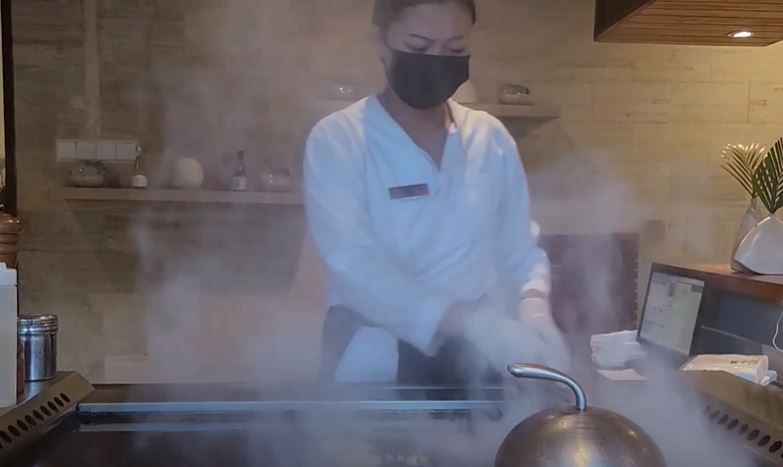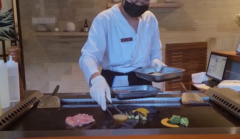 그렇게 불 쇼가 끝난 뒤에 곧 철판 요리가 나왔습니다.