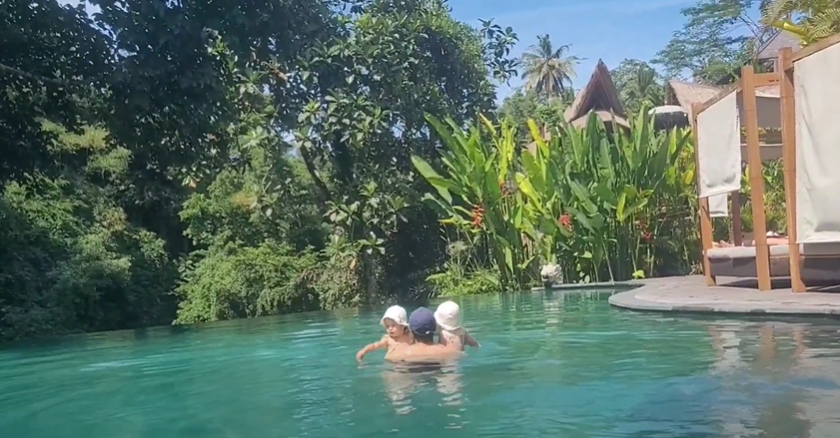 아침에도 아이들과 수영 한 판 즐겨줬습니다.