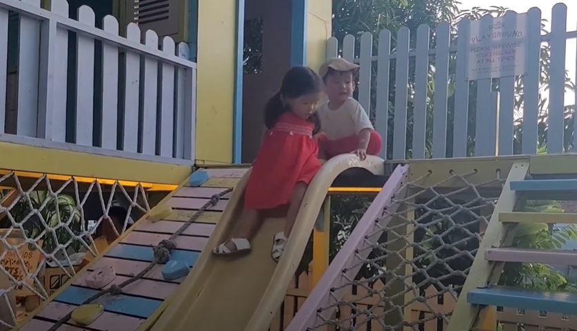 미끄럼틀 보자마자 신나게 달려드는 둥이들...ㅋㅋ