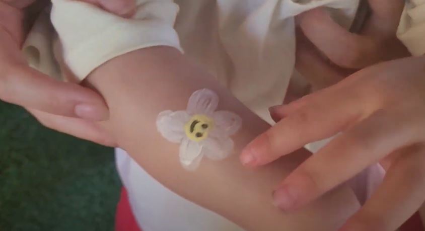 아이들이 오래 앉아있을것 같지 않아서 얼굴에 그리는 것은 무리고, 팔에 예쁜 꽃을 그려달라했더니 그려주셨네요.