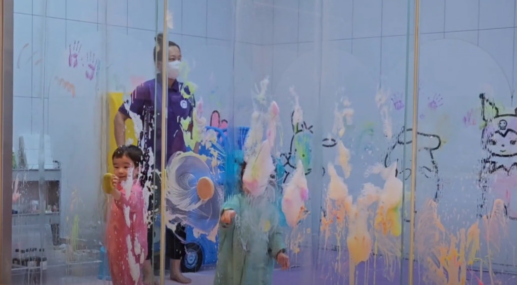그 후에는 방을 이동하여 물감놀이, 물놀이를 하고 2주에 한번씩 있는 프로그램을 진행하는데요.
