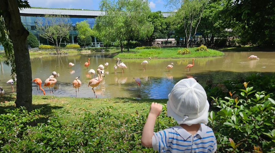 물놀이터 바로 옆에 동물원이 있는데 이 곳에서 홍학떼가 우리를 반겨줍니다.