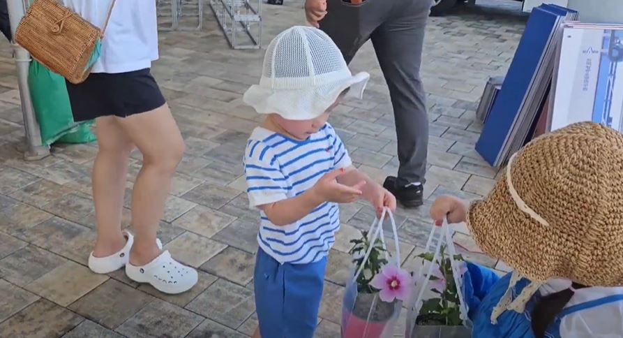 이날 무궁화 축제가 열리고 있었습니다. 거리에서 무궁화를 나눠주길래 시하온도 무궁화 하나씩 받고
