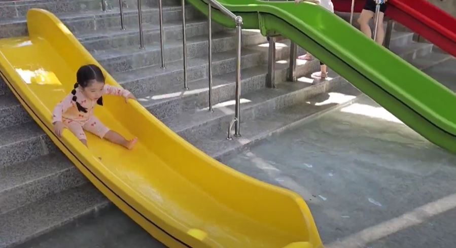 흐르는 물에서 타는 미끄럼틀이라 짧아서 스릴 만점입니다.
