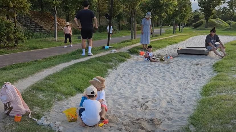 요즘 아파트 놀이터에 모래사장이 있는 경우가 드물기 때문에 아이들이 모래 사장을 보고 굉장히 반가워했습니다.