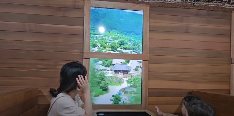 그리고 화면의 스크린에서 실제 기차를 타고 여행가는것처럼 창문의 풍경이 움직이는 것을 재현해놨습니다.