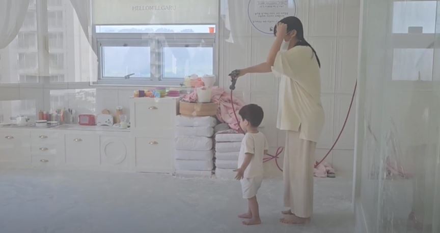 옷 갈아입고 첫 순서인 밀가루 놀이를 진행하는데 선생님 쫓아다니면서 둘이 잘 놀더라고요..ㅋㅋ
