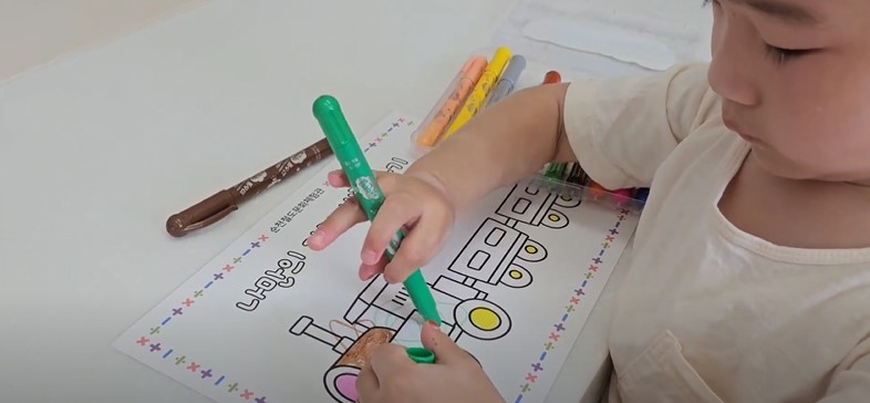 기차여행을 하고 난 뒤에는 색칠놀이를 할 수 있습니다.